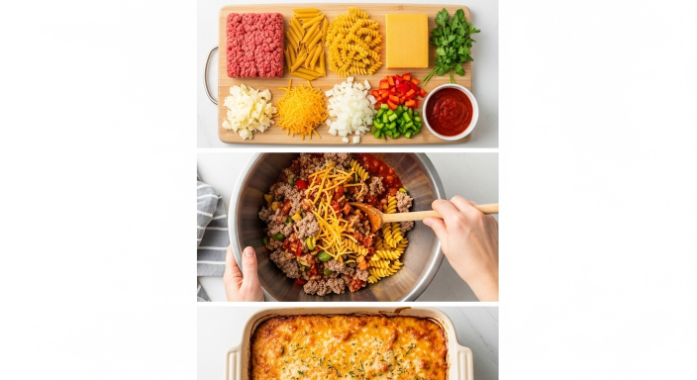 Cheesy Hamburger Casserole Bake is a comforting and hearty dish that brings together ground beef, pasta, and lots of cheese in one delicious meal. It’s perfect for busy families or anyone looking for a simple dinner option. This casserole is easy to prepare and makes great leftovers, which saves you time on future meals. With its creamy texture and rich flavors, it’s sure to satisfy everyone at the table.