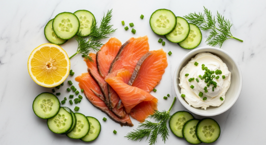 Elegant, no-cook appetizer featuring crisp cucumber slices topped with creamy herbed spread and smoky salmon.